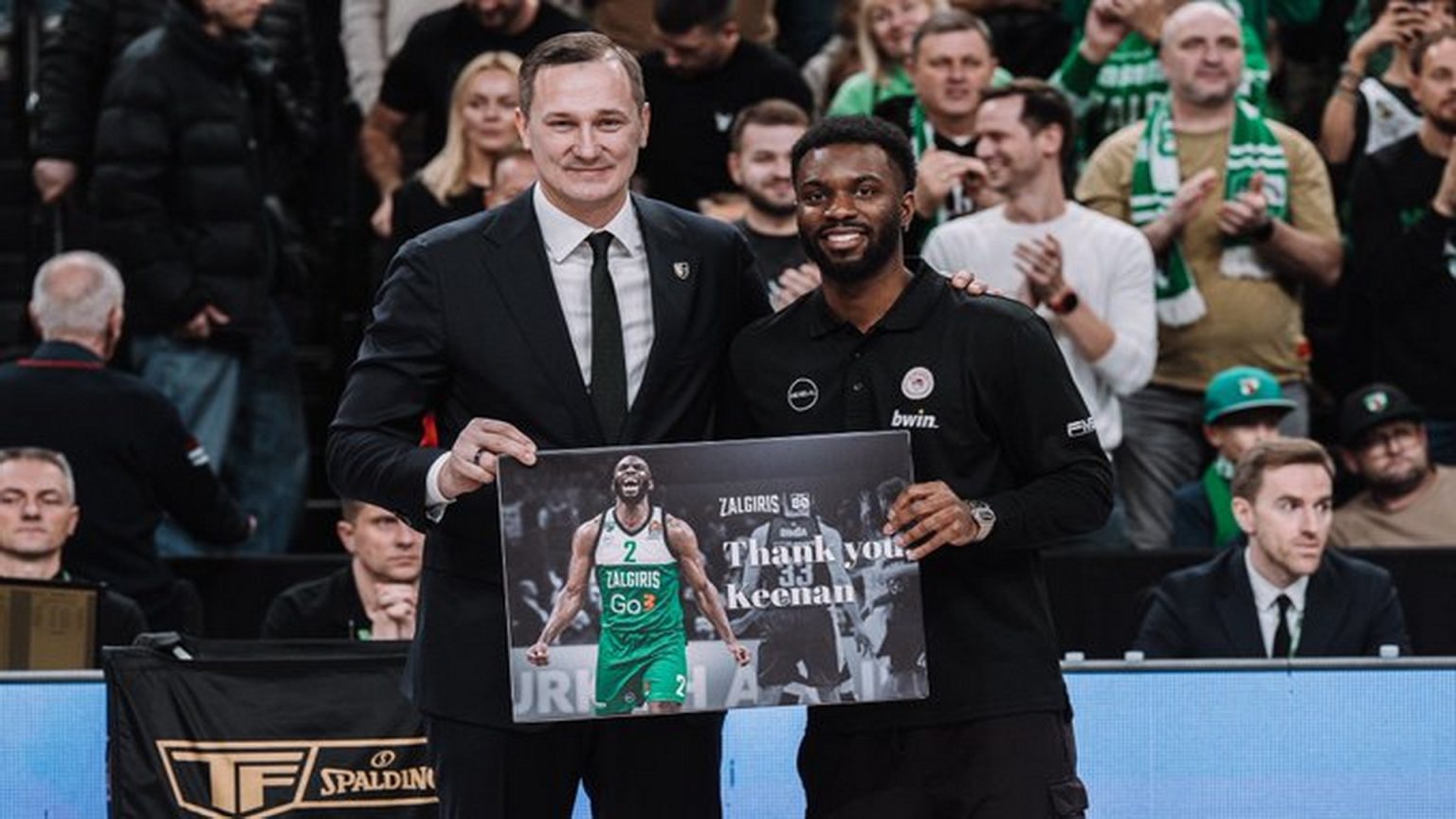 Έτσι, πριν την έναρξη της αναμέτρησης, ο πρόεδρος της Ζαλγκίρις, Παούλιους Γιανκούνας, βράβευσε τον Αμερικανό πρώην παίκτη της ομάδας και νυν του Ολυμπιακού, με την εξέδρα να τον αποθεώνει.