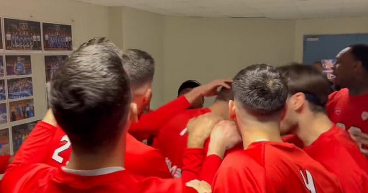 Έτσι, πριν την είσοδο της ομάδας στο παρκέ, για την προθέρμανση, ο Σάσα Βεζένκοβ με τους συμπαίκτες του, πραγματοποίησαν το καθιερωμένο τους τελετουργικό, με τον “ερυθρόλευκο” φόργουορντ να δείχνει τις ικανότητες του και στο… άλμα εις μήκος!