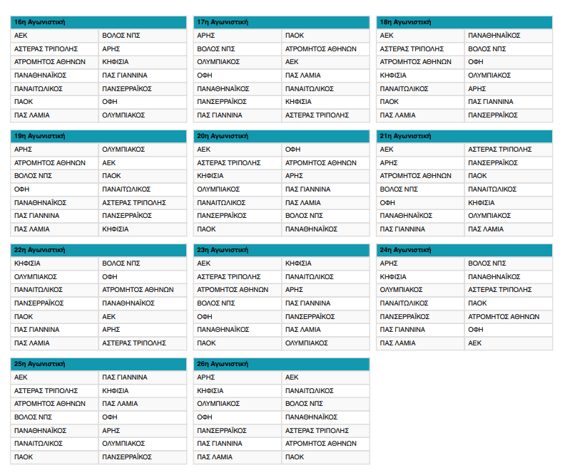 Τα ντέρμπι της Superleague είναι για τον Ολυμπιακό την 4η αγωνιστική με ΑΕΚ στη Νέα Φιλαδέλφεια, την 8η αγωνιστική με τον Παναθηναϊκό στο Καραϊσκάκη και την 10η αγωνιστική με τον ΠΑΟΚ στο Καραϊσκάκη.