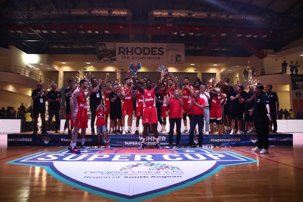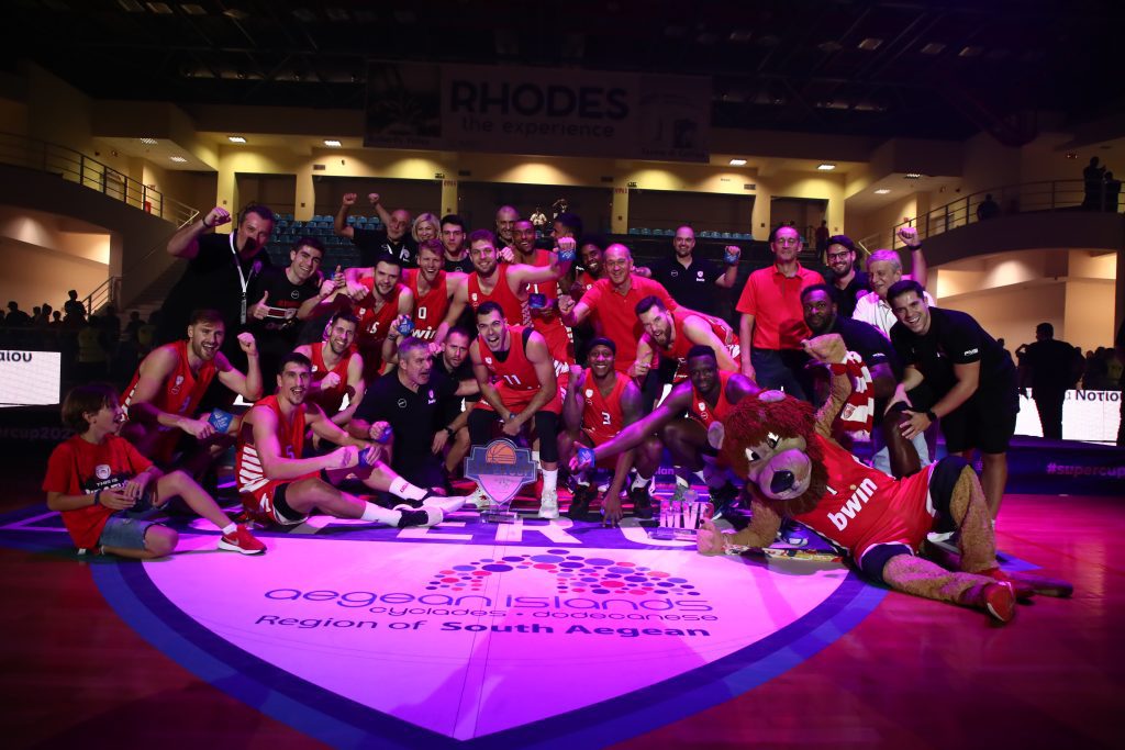 Ο Ολυμπιακός κατέκτησε το πρώτο τρόπαιο της σεζόν στο μπάσκετ, το Super cup, κερδίζοντας τον Παναθηναϊκό στον τελικό, με τον αρχηγό Κώστα Παπανικολάου να δίνει την χαρά στον Χρήστο Μπαφέ να το σηκώσει μαζί του.