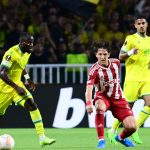 Η Ναντ προηγήθηκε στο Λα Μπουζουάρ, όταν ο Μοχάμεντ στο 32’ έφυγε στην πλάτη της άμυνας του Ολυμπιακού και πλάσαρε εύστοχα.