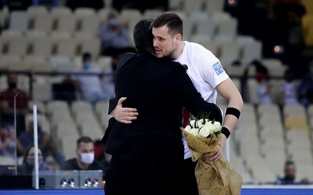 Ο Ολυμπιακός δεν ξεχνάει τα δικά του παιδιά και ένα από αυτά είναι και ο Δημήτρης Αγραβάνης. Έτσι, λίγο πριν από την έναρξη της αναμέτρησης με τον Προμηθέα, ο εκ των προέδρων της ερυθρόλευκης ΚΑΕ, Παναγιώτης Αγγελόπουλος, βράβευσε τον φόργουορντ των Πατρινών, για την προσφορά του στον σύλλογο.
