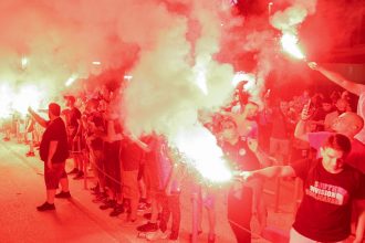 Την νύχτα σε ημέρα μετέτρεψαν οι οπαδοί του Ολυμπιακού, που συγκεντρώθηκαν έξω…