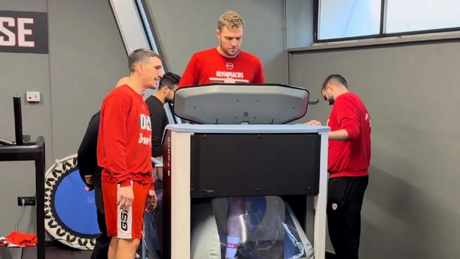 Έτσι, ο Βεζένκοβ χρησιμοποιεί τον διάδρομο «anti-gravity treradmil», ένα υπερσύγχρονο μηχάνημα που προμηθεύτηκε το καλοκαίρι ο Ολυμπιακός και βοηθά τους τραυματίες παίκτες να τρέξουν χωρίς κίνδυνο, ώστε να μην χάσουν την φυσική τους κατάσταση.